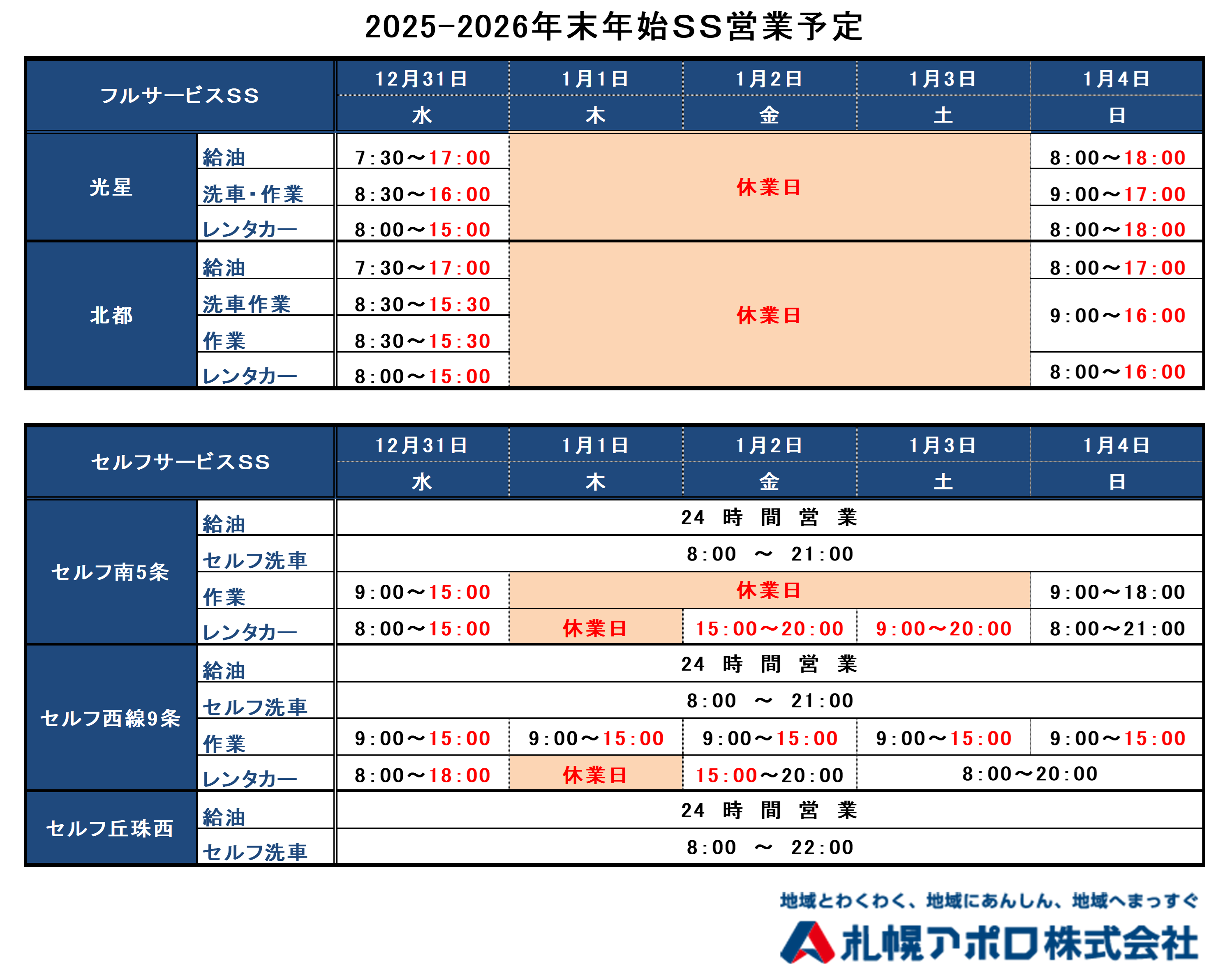 いつも当社をご愛顧いただき、誠にありがとうございます。お客様へ年末年始の営業時間のお知らせです。 詳細は以下の一覧にてご確認いただけます。