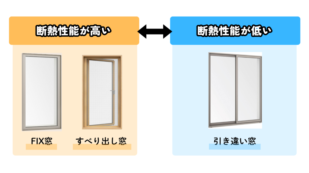 一方ふすまのように滑らせて開け閉めする引き違い窓は、窓同士の隙間に手をかざすと冷たい空気が手に当たるのを感じたことはありませんか?引き違い窓は構造上こうした隙間が生じやすく、断熱性能はあまり高くありません。